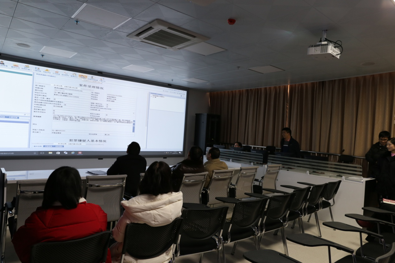 在黔西县院大数据展示中心,冯涛主任一行观摩了当天的远程开庭,指出了在设备对接联调中存在的信号接入慢,要加强与法院技术部门和服务提供方的沟通。该院各业务部门负责人分别向检查组展示了案件分析服务系统、大数据办案辅助系统、案件评查系统等操作和介绍目前各子系统的运行情况。冯涛主任表示,将检察业务多个子系统日常办案活动通过多媒体平台的集中展示,既显示大数据人工智能的便利性又体现了检察机关执法办案的信息化和便捷化程度,各业务部门负责人的精彩演示,展现入额领导的办案能力和信息应用水平。