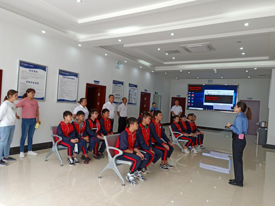 绥阳县人民检察院检察官助理带领师生们先后参观了12309检察服务中心、未成年人检察办案区、律师接待室、远程提讯室、检察院陈列室及图书馆等办公区域,通过讲解,让师生和家长代表深入了解检察工作职能,零距离感受检察办案区环境,切身体会检察文化氛围。宣讲员重点讲解了检察院的未成年人检察办公室的工作职能,并结合案例,让同学们直观地了解未检工作。