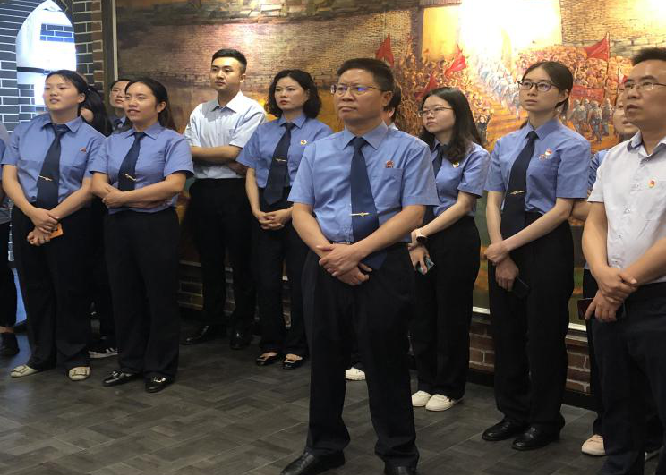 参观完以后,大家来到宣誓厅,在党支部书记黄波副检察长的带领下,大家举起右拳,庄严宣誓,重温入党誓词,党员们铿锵有力的声音响彻大厅。在党旗下,党员们再一次将入党誓词铭记于心。